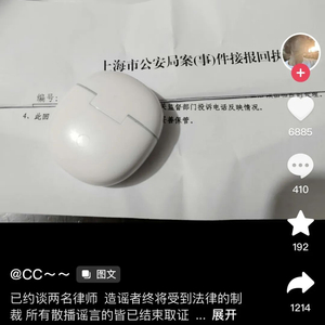 2月20日晚,女主播CC在短视频平台发布一张“上海市公安局案(事)件接报回执”照片,文案中,她写道,“已约谈两名律师,造谣者终将受到法律的制裁,所有散播谣言的皆已取证结束,一个都跑不掉。”2月21日,CC再次发布澄清视频提到,她已进行司法取证,将交由相关部门处理。截至发稿时止,她没有回复新京报记者的采访请求。