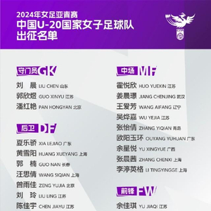 U20中国女足出征亚洲杯大名单:乔睿琪因伤无缘,江苏6人入选