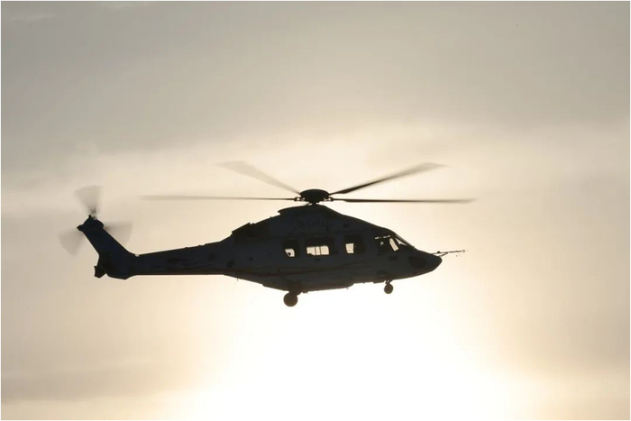 天光渐亮,两架直升机的轮廓愈发清晰。随着清晨的第一缕阳光逐渐蔓延到机身上,一天的飞行开始了。
