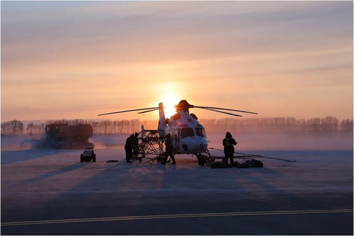 建三江,位于祖国北部边陲的三江平原腹地,这里被誉为我国“最早迎接太阳的垦区”。在这里,总有朔朔寒风从大片被冰雪覆盖的农场掠过,零下三四十摄氏度的体感温度给你安排得明明白白。新年伊始,“吉祥鸟”AC332与AC352直升机在建三江顺利“会师”,用冰雪熄灭不了的热情,在三江平原上演着“冰与火之歌”。