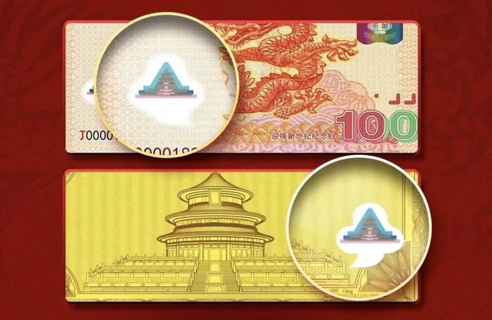 贵如黄金的变色油墨、应用金银沙面浮雕技术、激光全息仿伪标贴,细腻逼真的还原龙钞。