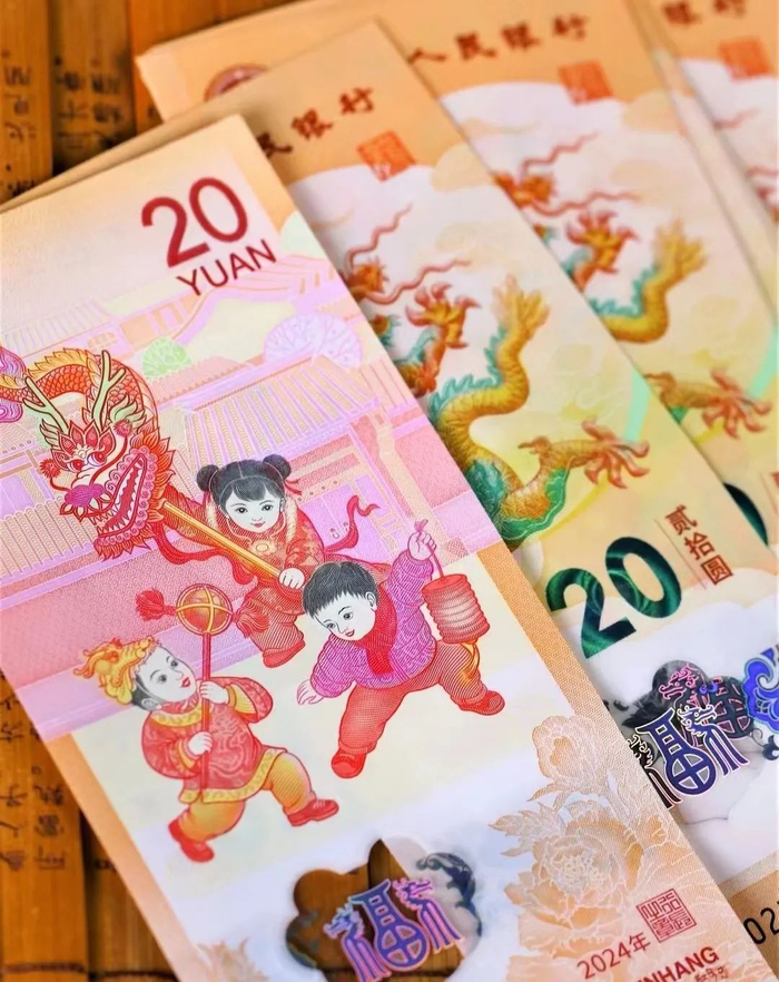 这套纯金版纪念钞与原钞图样一致,是为了迎接2024甲辰龙年而发行的。