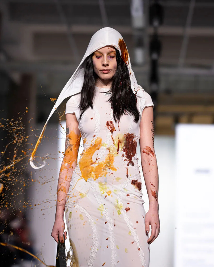 【环球网报道】2024/2025米兰秋冬时装周于2月20日至26日在意大利米兰举行。综合乌克兰独立新闻社等多家媒体2月29日报道,时装周期间,根据意大利服装品牌Avavav的设计师贝亚特·卡尔森的安排,该品牌的模特在展示服装时,场下人员向模特扔水果、水瓶等物品。这一做法在社交媒体上引发网友议论,卡尔森称,水瓶等垃圾代表网络上对她设计的服装的不满。