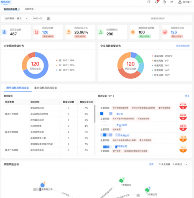 百望云构建了完整的内外兼修的全场景风险管控体系,为企业搭建税务风险管理闭环系统,在企业授权的前提下,基于发票数据、申报数据及行业大数据,采用可视化的方式多维度分析展现集团风险画像和企业风险画像,并通过图谱方式对集团或企业上下游进行关联风险分析,覆盖销项开票、进项受票、纳税申报及供应链协同等多场景的合规管理,帮助掌握全局风险概况,提高整个集团的合规管控能力。