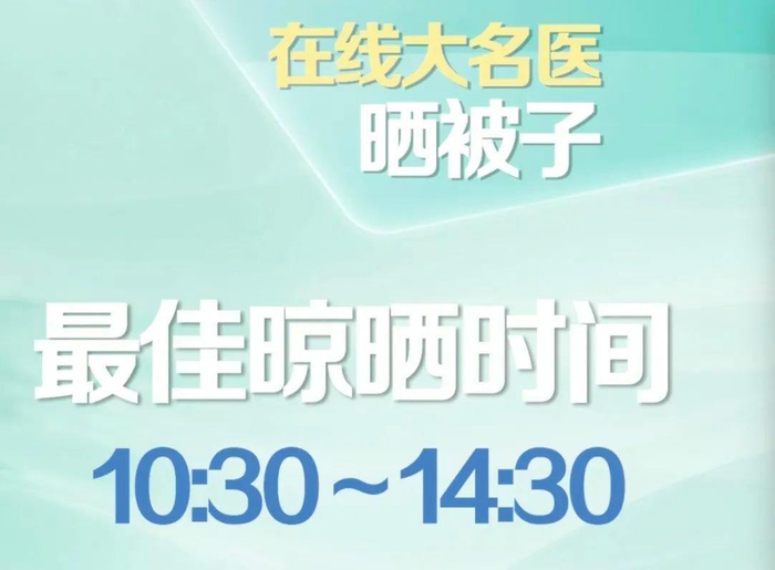 5.被子的最佳晾晒时间为10:30~14:30,这个时间段内紫外线比较充足,晒完的被子要及时收回去。