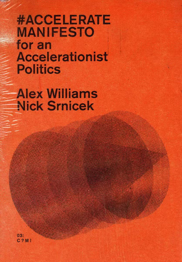 2013年,亚历克斯·威廉姆斯(Alex Williams)与尼克·斯尼斯克(Nick Srnicek)在“法律批判思想(Critical Legal Thinking)”平台上发表了《加速主义宣言》(Manifesto for an Accelerationist Politics)——锐利地提出了当代左翼加速主义的政治纲领。