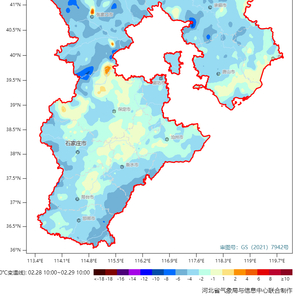 今天上午,继续受冷空气影响,河北大部地区出现下降,从10时过去24小时变温图看,降幅较大的区域出现在北部和东南部,其中,清河降幅最大,相比昨天同时刻温度低了5.4℃。