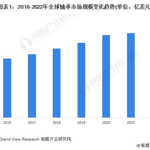 根据Grand View Research披露的信息,2016-2022年,全球轴承制造市场规模呈逐渐上涨趋势,年均复合增长率约为7.4%左右。2022年,全球轴承市场规模达1302亿美元,同比上涨7.3%。