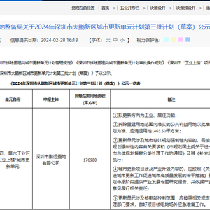 中国质量新闻网讯 2月28日,深圳市大鹏新区城市更新和土地整备局公示《2024年深圳市大鹏新区城市更新单元计划第三批计划(草案)》。
