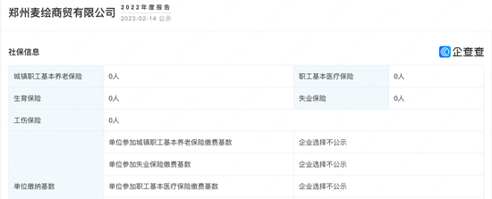 据南都湾财社报道,天萁西梅汁的产品经销商为郑州麦绘商贸有限公司。企查查显示,这家公司成立于2022年4月,注册资本100万元,实控人和法定代表人也是黄耀群。年报信息显示,该公司2022年参保人数为0。这就意味着,一家成立不满一年的公司,其代理的产品便登上了东方甄选的直播间。