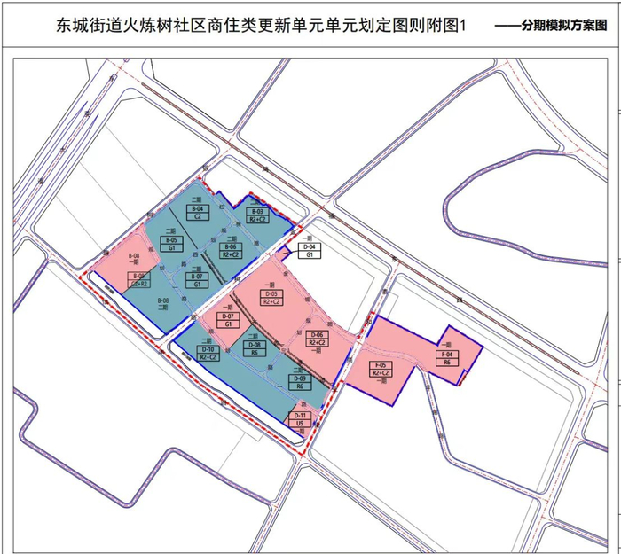 根据规划,该旧改项目一期地块共包含8宗小地块,包括D05商住地块(回迁房)、D06商住地块、F05商住地块、B08商业金融业地块、F04学校地块、D07公园地块、D04街头绿地、D11市政设施地块,并同步实施道路和地下空间的修建。
