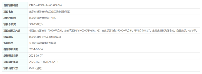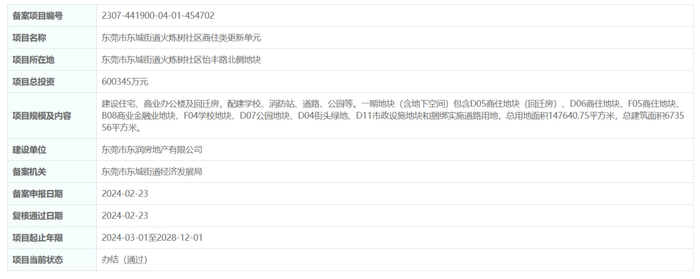 近日,据广东省投资项目在线审批监管平台显示,东城街道火炼树社区商住类更新单元完成投资备案。