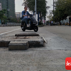 此前,该处井盖周遭砌了水泥,使得整个井盖突出路面约10公分,长约2米,宽约1米,井盖本身看不到所属单位的信息,但金属井盖已经移位,可见井内有不少线缆。周边市民表示,该处凸起的井盖已导致多起市民骑车磕碰摔倒或小轿车刮到底盘,有的市民表示已目睹至少4起电动车磕碰井盖摔倒的情况。