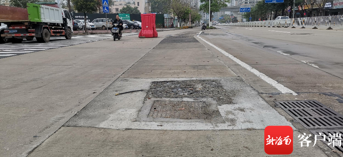 新海南客户端、南海网、南国都市报报道此问题后,海口市交警设施大队有关负责人到场核实情况,并将问题反馈给相关单位,随后海口市龙华区住建局介入调查处理,称该位置井盖及水泥体原先是天网监控设备的基础设施,是后来通信公司拆除后留下的,该局协调了施工单位安排工人及材料对该处凸起井盖进行了改造,目前井盖已经降低至路面齐平。记者现场也看到,市民骑车或开车通行已经畅通无阻。