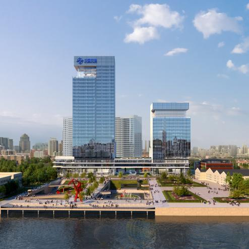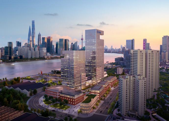 项目位于上海市杨浦区滨江门户位置,西邻北外滩,南临黄浦江与浦东陆家嘴,为杨浦滨江、虹口北外滩、浦东陆家嘴黄金三角区域核心地段,占地面积27054平方米,总建筑面积189936平方米。项目共有2栋高层办公楼及4栋4层商业/物业配套独栋建筑,办公塔楼A座32层高度160米、建筑面积64141平方米,办公塔楼B座19层高度100米、建筑面积32397平方米,独栋商业10822平方米,地下商业9000平方米。