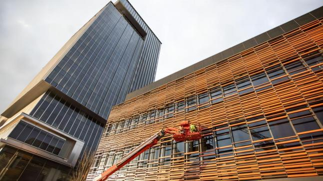 项目精装工程、幕墙工程已全部完工,泛光工程、景观工程正在施工中。