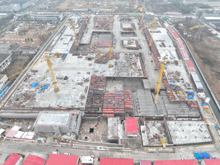 项目位于上海市青浦区金泽镇,2020年9月27日正式动工,整个项目占地约2400亩,东西向最长2.4公里,南北约900米。拟建总建筑面积约220万平方米,其中地上建筑面积约110万平方米,地下建筑面积约110万平方米。项目主要用于科研、办公及配套设施,如研发办公楼、实验室、会议厅、食堂及附属设施等。