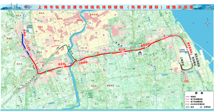 预计2024年底先行开通段通车。虹桥和浦东两大综合交通枢纽间运行时间可控制在40分钟左右,与多条既有及在建轨道交通实现换乘,方便沿线市民和旅客出行。同时,还将进一步增强浦东和虹桥综合交通枢纽对长三角区域的辐射作用,服务长三角城市群,为提升上海全球城市能级和核心竞争力、落实长三角一体化发展国家战略提供有力支撑。