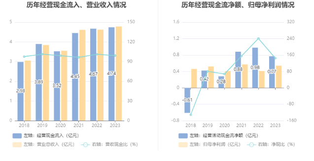 2023年,公司营业收入现金比为99.12%,净现比为144.42%。