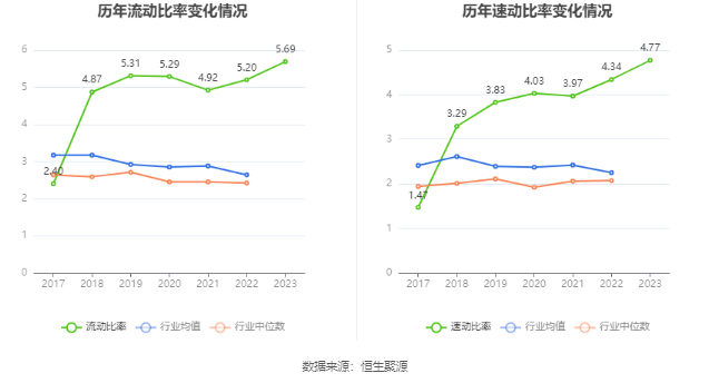 2023年,公司流动比率为5.69,速动比率为4.77。