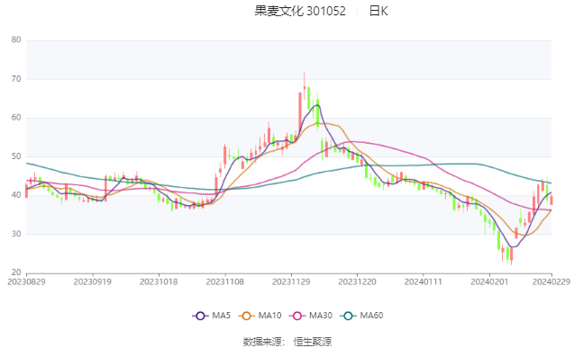 以2月29日收盘价计算,果麦文化目前市盈率(TTM)约为53.89倍,市净率(LF)约4.31倍,市销率(TTM)约6.05倍。