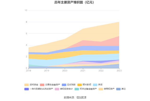 资产重大变化方面,截至2023年年末,公司交易性金融资产较上年末增加126.91%,占公司总资产比重上升11.13个百分点;货币资金较上年末减少13.26%,占公司总资产比重下降7.42个百分点;一年内到期的非流动资产较上年末减少75.20%,占公司总资产比重下降4.16个百分点;预付款项较上年末减少21.84%,占公司总资产比重下降2.36个百分点。