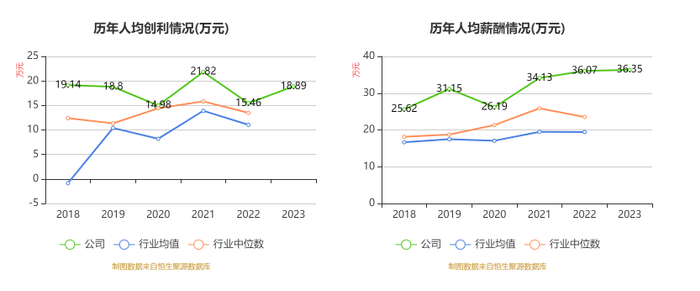 截至2023年末,公司员工总数为284人,人均创收168.35万元,人均创利18.89万元,人均薪酬36.35万元,较上年同期分别变化-3.80%、22.20%、0.77%。