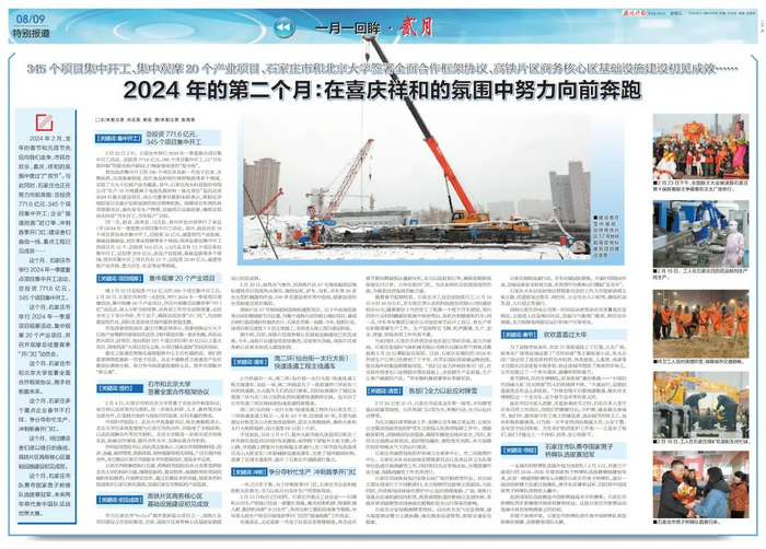 2024年2月,龙年的春节和元宵节先后向我们走来,市民在欢乐、喜庆、祥和的氛围中度过了“双节”。与此同时,石家庄也正在努力向前奔跑:总投资771.6亿元,345个项目集中开工;企业“提速抢跑”赶订单、冲刺首季开门红;建设者们奋战一线,重点工程已见成效……
