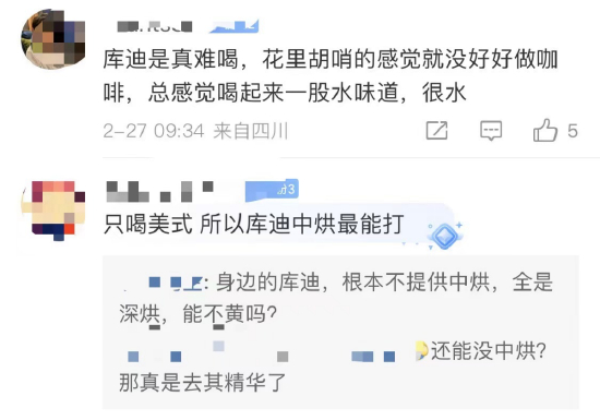在上述投票的评论区中,双方均有支持者:比如在评价库迪的美式咖啡时,有人称难喝,也有人称“吊打”瑞幸。