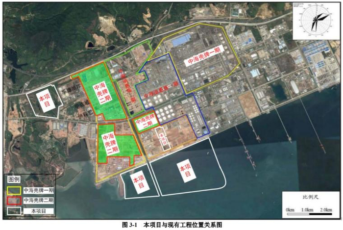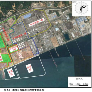 建设地点:广东惠州大亚湾石化产业园区内,本项目用地分为4个地块,D5D6地块面积为586925平方米,E5地块面积为1883399平米,B4B5地块面积为418221平方米,中海壳牌二期公用工程区EF地块预留用地面积为149695平方米,四个地块总用地面积共计3038267平方米。D5D6地块和E5地块为项目主厂区。