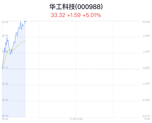 03月01日,华工科技(000988)股价大幅上涨,截至10点07分,华工科技上涨5.01%,报33.32元/股,创近4月新高,成交12.57亿元,换手率3.83%。