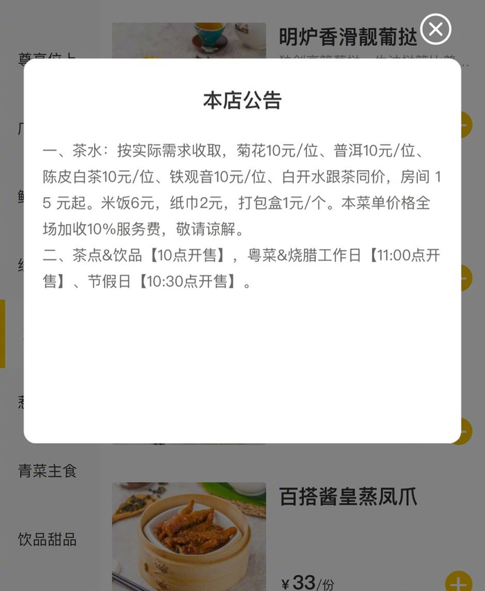 佬麻雀的茶位费在点单系统内不能取消