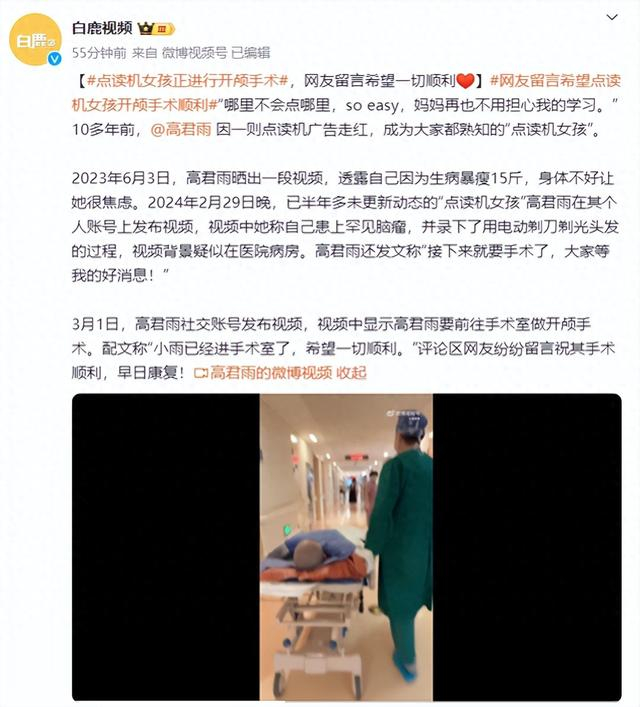 “点读机女孩”高君雨正进行开颅手术,网友留言希望一切顺利