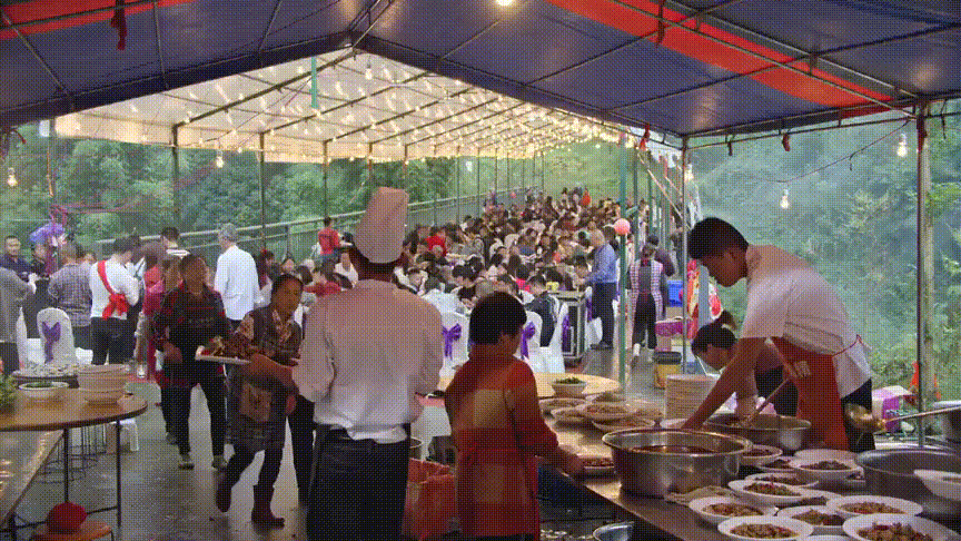 但这种宴席形式依然保存到了现在。在自家院子里摆上一次坝坝宴,亲朋好友齐聚,除了经济实惠和方便之外,更重要的是那份在一起的氛围感,那份已经在城市生活中逐渐消失的人与人之间的亲密感,在坝坝宴得以重新找回。
