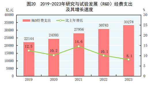 国家统计局:2023年全年研究与试验发展经费支出33278亿元