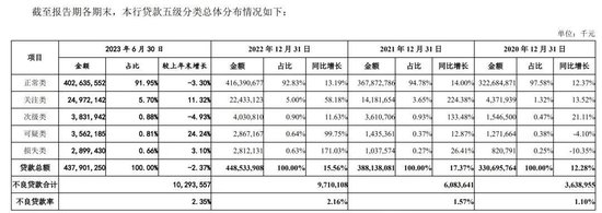 连年增收不增利,与广州银行的资产质量有关。招股书显示,2020年至2023年6月30日,广州银行不良贷款率逐年攀升,分别为1.10%、1.57%、2.16%和 2.35%。