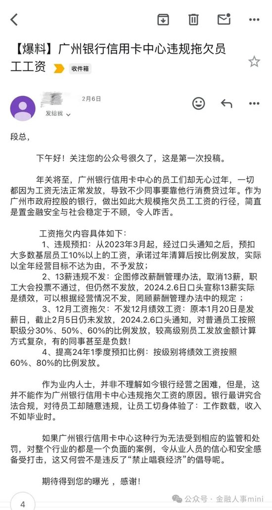随后,有媒体报道后续,广州银行部分员工已收到了13薪,之前被打折的工资差额将会补发;另外一部分员工2023年延付的工资需要等到年后才会有具体方案。