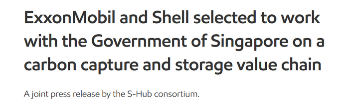 这两家公司在新加坡的子公司——埃克森美孚亚太有限公司和壳牌新加坡有限公司——联手组建了S-Hub财团,该财团将与新加坡政府合作,作为CCS项目的主要开发商,以减少当地的二氧化碳排放。