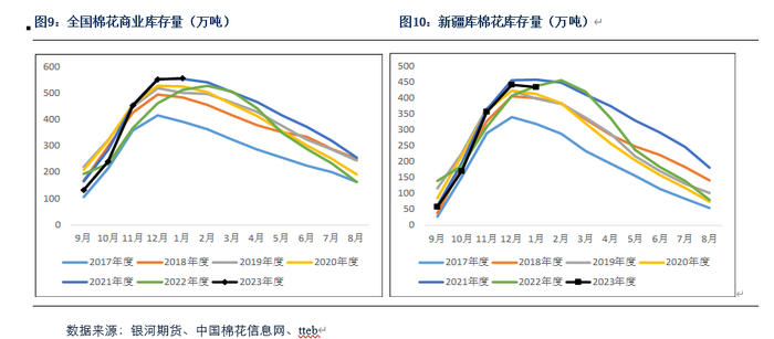 2、棉花商业库存较高,国内市场棉花供应仍将宽松。