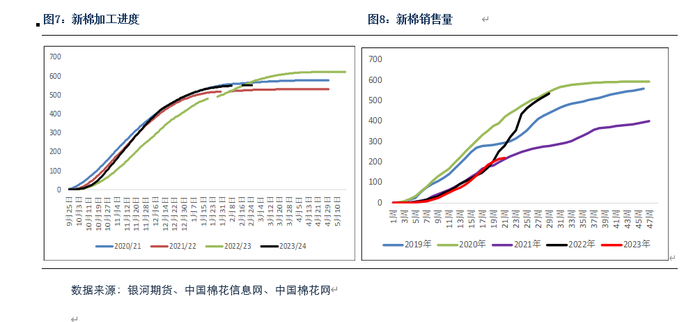 1、新棉加工增速持续放缓,新棉销售进度较缓慢。