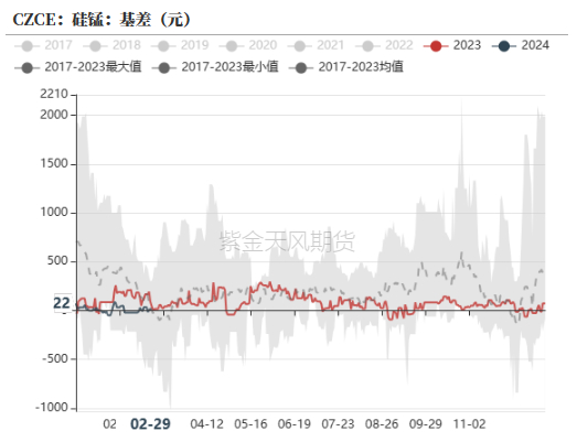 截止3月1日,锰硅5-9月差-28元/吨,环比下行10。