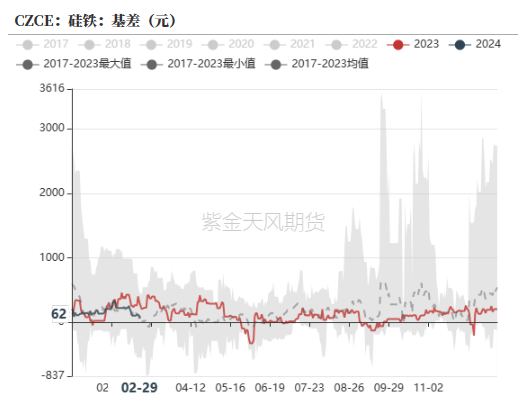 截至3月1日,硅铁5-9月差-78元/吨,环比下行12。