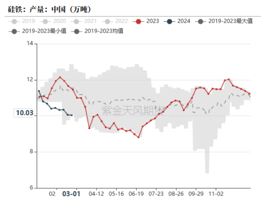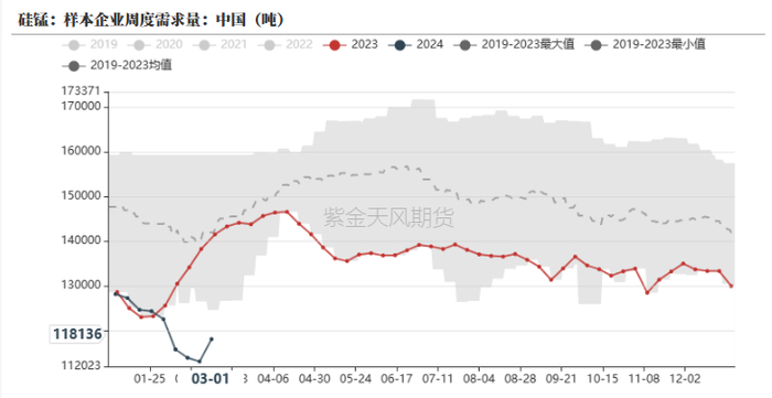 钢厂硅铁需求量持续下行,据Mysteel统计,截止3月1日,样本钢厂消费硅铁合计仅为1.9万吨,环比略有恢复,但远低于历史同期水平。