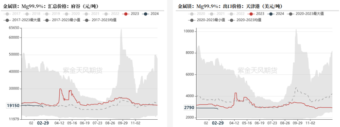 截止3月1日,金属镁天津港出口价格为2790美元/吨,环比下行90美元/吨;市场价格为19150元/吨,环比下行650元/吨。