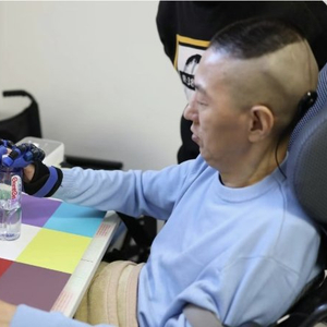 第一例四肢截瘫患者在用NEO脑机接口练习脑控抓握