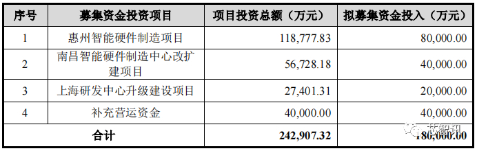 龙旗科技原计划募资18亿元,相比上一次的IPO申请拟募资的4.27亿元暴涨超300%。其中,8亿元用于惠州智能硬件制造项目,4亿元用于南昌智能硬件制造中心改扩建项目,2亿元用于上海研发中心升级建设项目,4亿元用于补充营运资金。