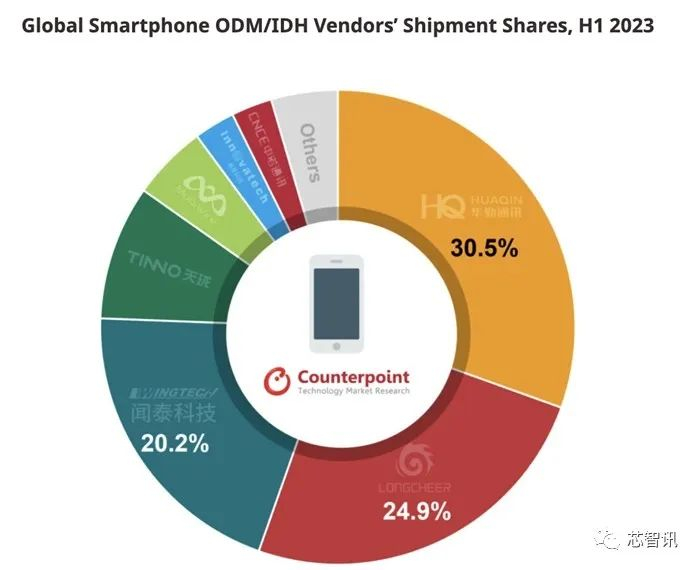 根据2023年10月,Counterpoint Research的研究报告显示,2023年上半年全球智能手机ODM/IDH厂商的出货量虽然有所减少,但此类机型在整体智能手机市场中的占比有所提升。