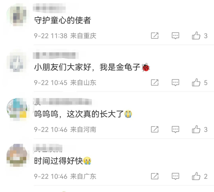 也有网友表示,“哪变老了?一个样!”“哭了,我都老了,她还是那么年轻”“童年回忆杀了,她还是和我记忆里的金龟子一模一样。”“妈呀,我的童年记忆,但是想想我现在都是两个孩子的妈妈了,也没有什么大惊小怪的……”“金龟子才没有老!”