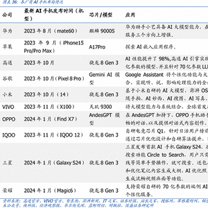 据国盛证券统计,从2023年8月起,国内外主流厂商相继将AI植入手机及芯片,大模型成了手机的标配。