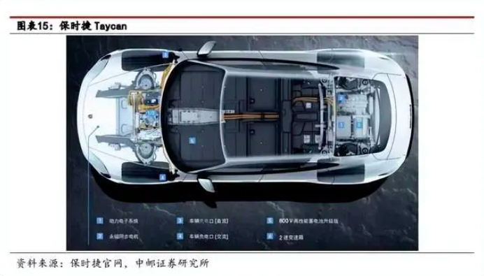 除了充电速度接近加油外,800V高压平台还可以减少零部件的重量。根据P=U²/R公式,在功率相同的情况下,高电压意味着可以使用更细的线束,这能带来续航里程的提升。以保时捷Tayca为例,800V高压平台的线束截面积仅有400V高压的一半,线束减重4kg。